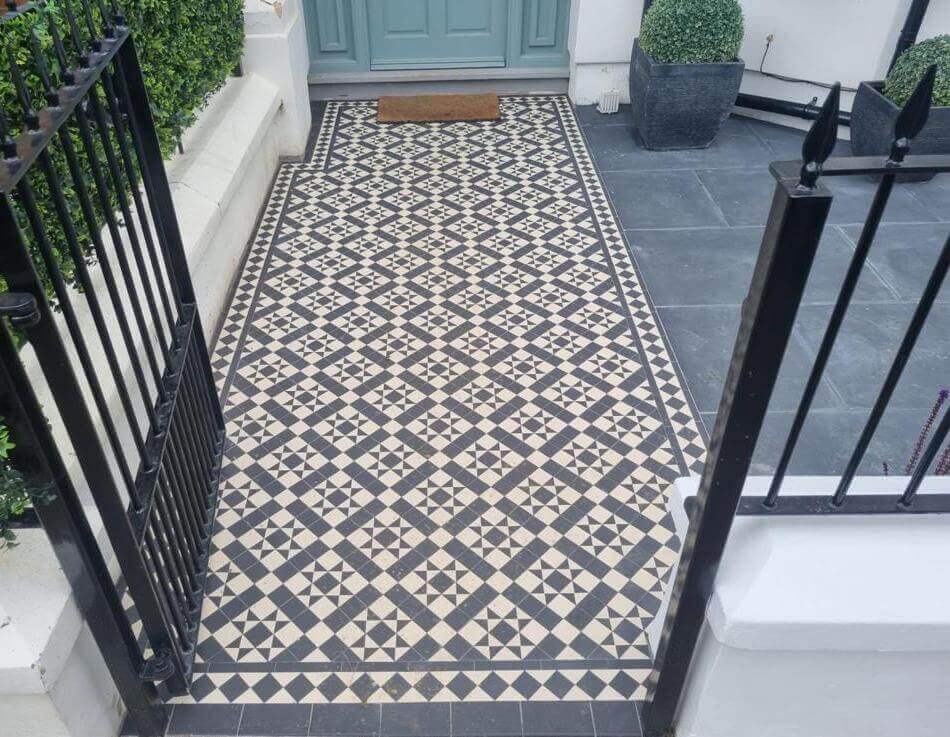Are you ready to upgrade your front garden with a luxurious geometric/mosaic-tiled porch/path? Contact us today for professional Victorian tile installation services in Hammersmith W6.
