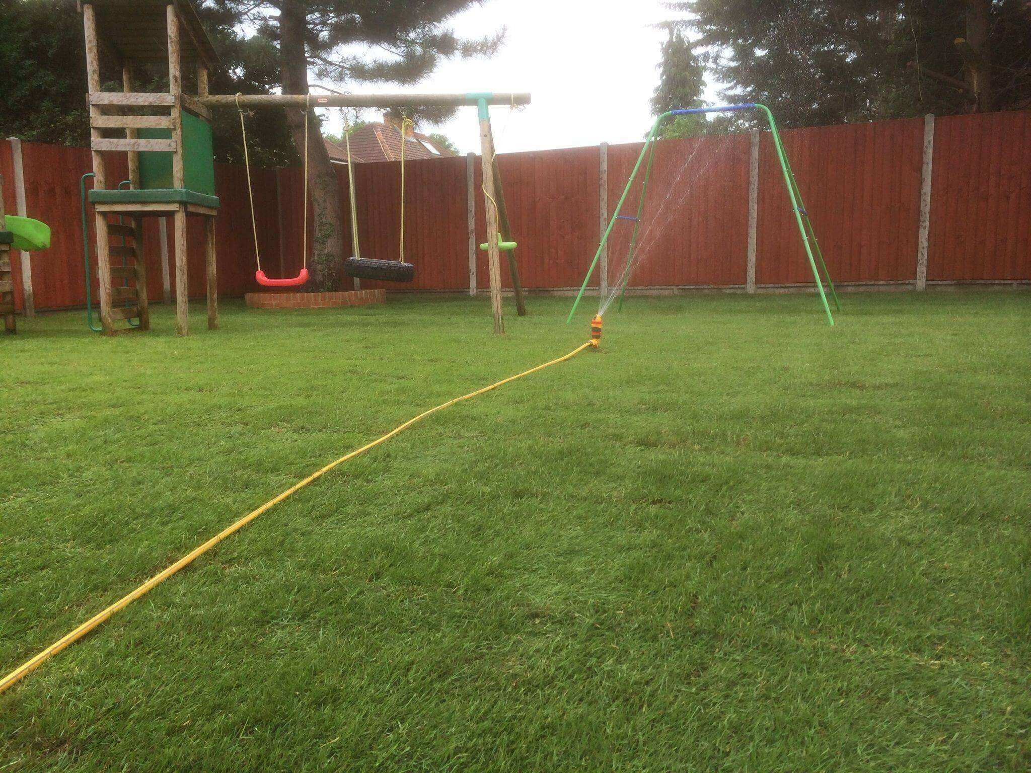 The lawn will need to be kept well-hydrated for the first couple of weeks. It will need to be watered every day for the first few weeks and then once a week thereafter.